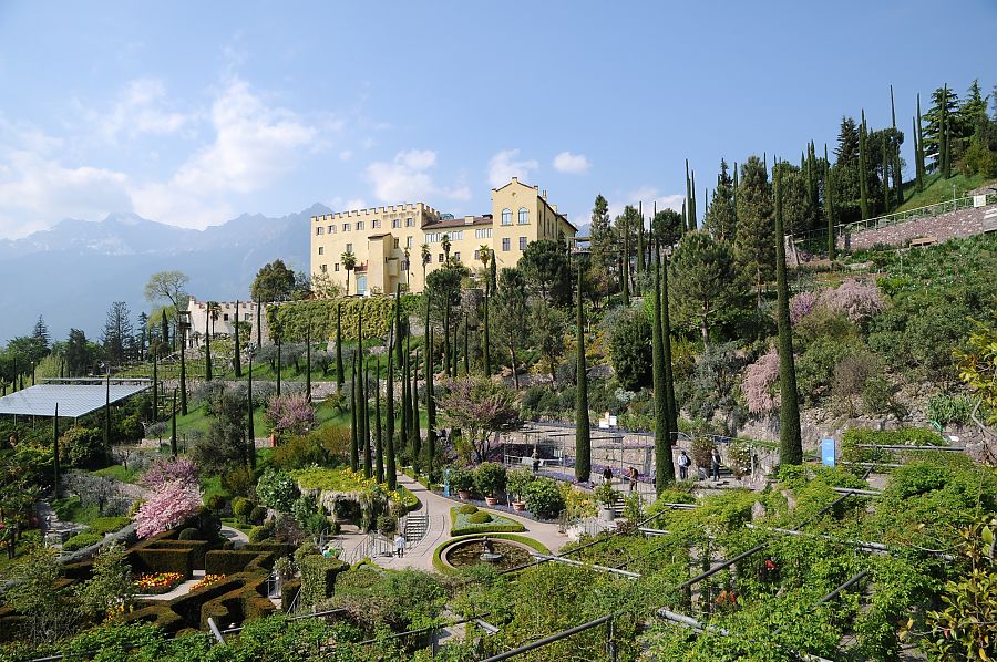 Die Kurstadt Meran und Schloss Trauttmansdorff zählten, aufgrund des milden, fast mediterranen Klimas, zu einem beliebten Reiseziel von Kaiserin Elisabeth (Sissi) von Österreich-Ungarn. Seit 2001 befinden sich dort auf einer Fläche von 12ha die mehrfach ausgezeichneten Gärten von Schloss Trauttmansdorff.