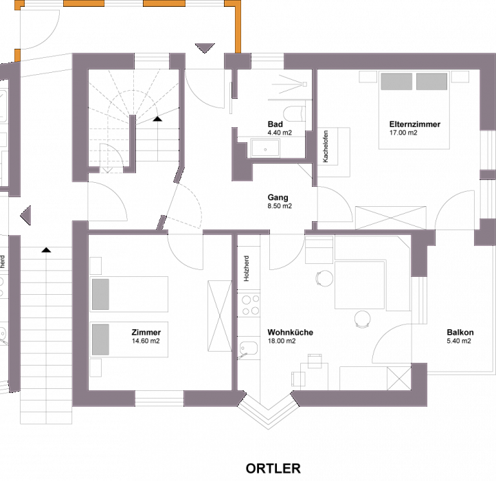 - Elternzimmer mit Kachelofen
