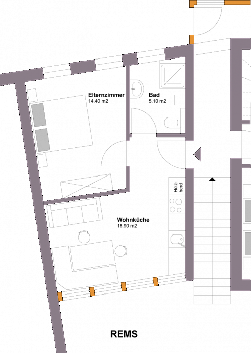 - Wohnküche (Holzherd, Keramik-kochfeld, Backofen, Kühlschrank, Kaffeemaschine, Espressomaschine, Sofa (ausziehbar), Eckbank, TV-SAT, Radio)